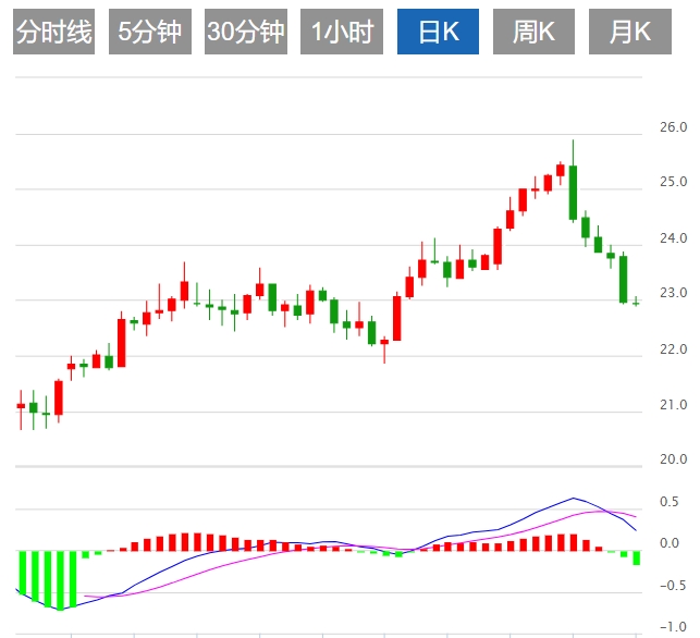 今日预期交易区间在22.40支撑位和23.35阻力位之间。