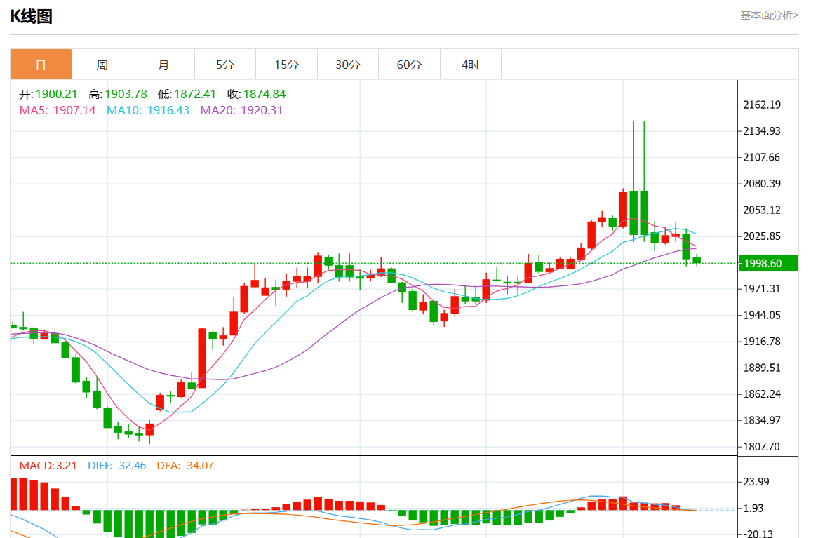 周一欧市盘中,现货黄金报1995.20,跌幅0.44%。