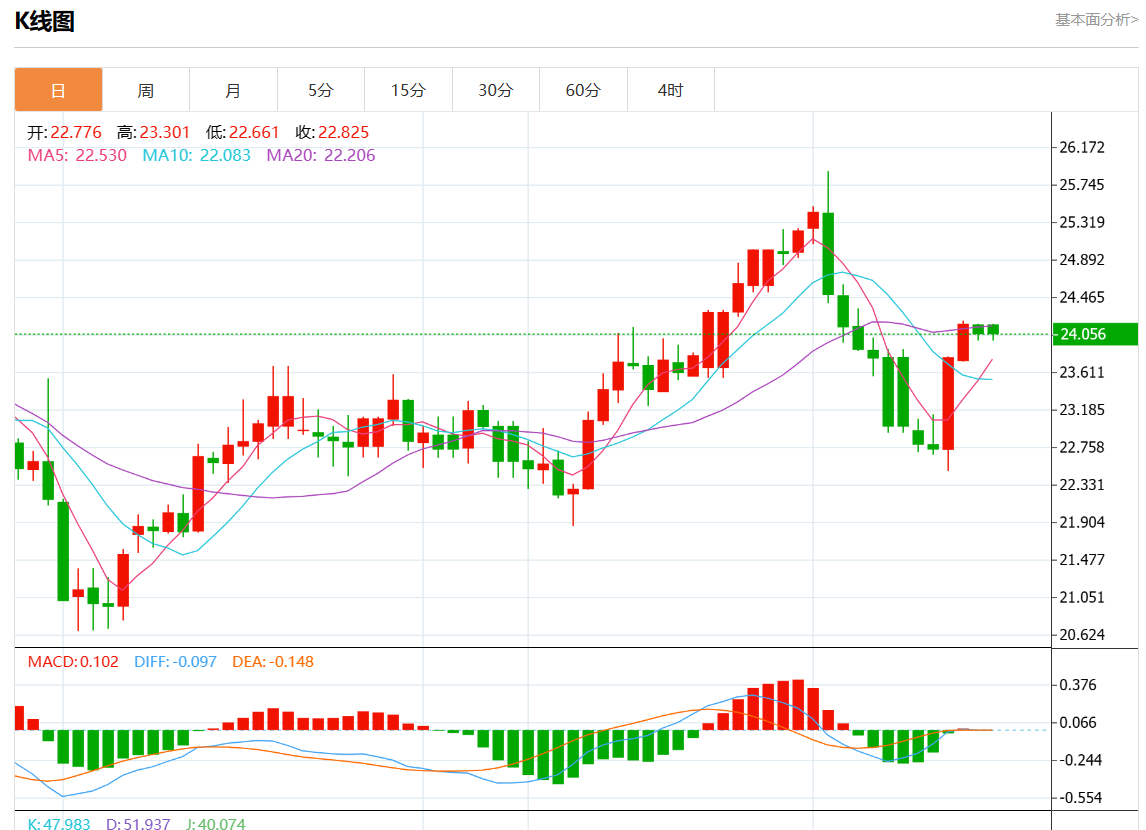 周五欧市盘中,现货白银报24.140,跌幅0.04%。