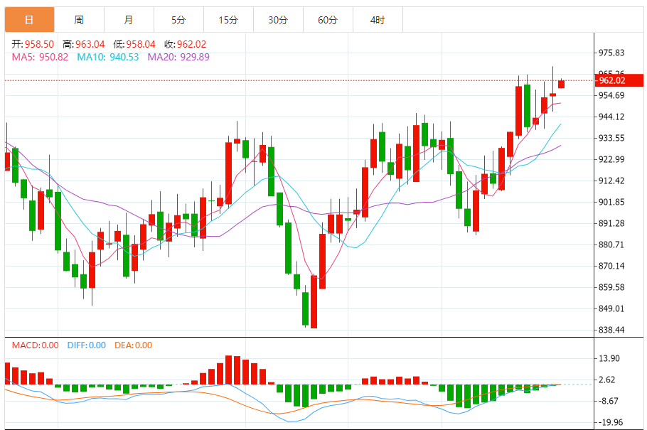 今日最新铂金行情:961.72