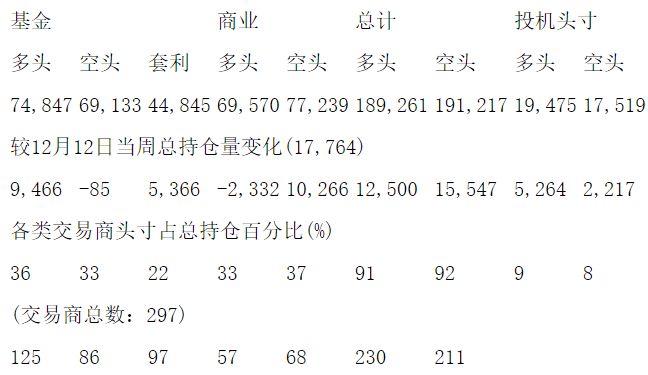 美国商品期货交易委员会(CFTC)最新公布截止12月19日当周COMEX铜期货和期权分类持仓报告: