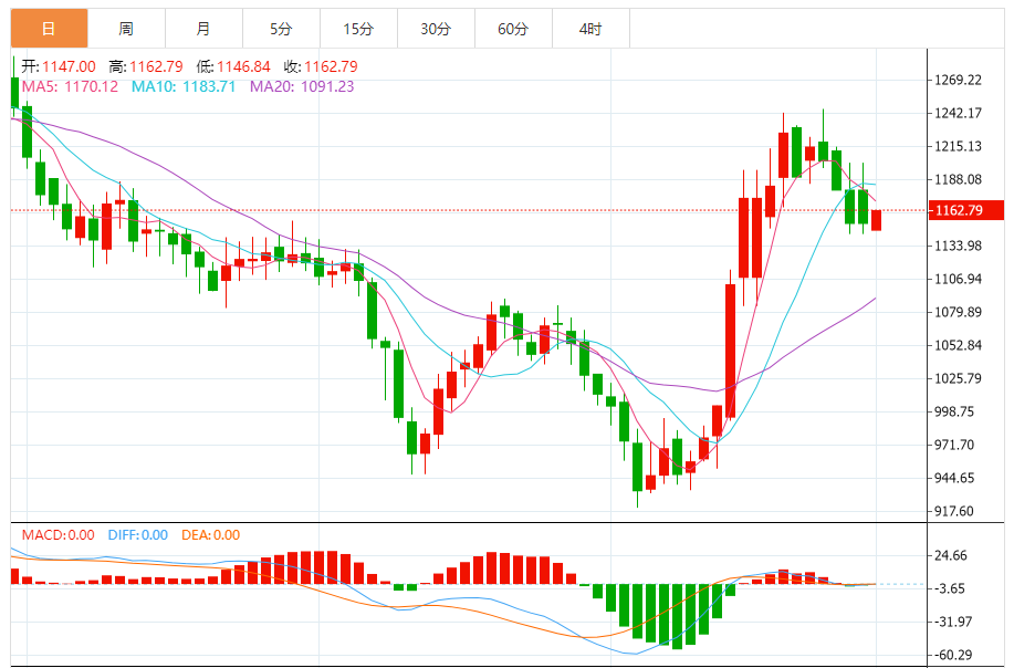 今日最新钯金行情:1162.79