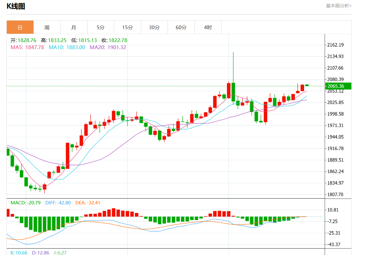 周四欧市盘中,现货黄金报2077.50,涨幅0.01%。