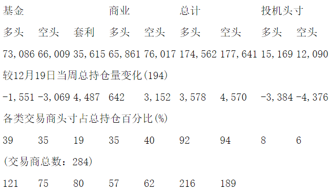 美国商品期货交易委员会(CFTC)最新公布截止12月26日当周COMEX铜期货分类持仓报告: