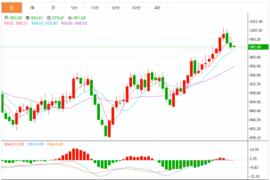 今日最新铂金行情:981.78