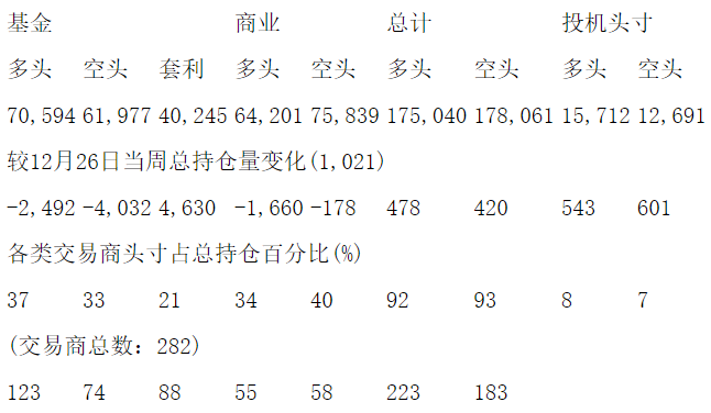 美国商品期货交易委员会(CFTC)最新公布截止1月2日当周COMEX铜期货分类持仓报告: