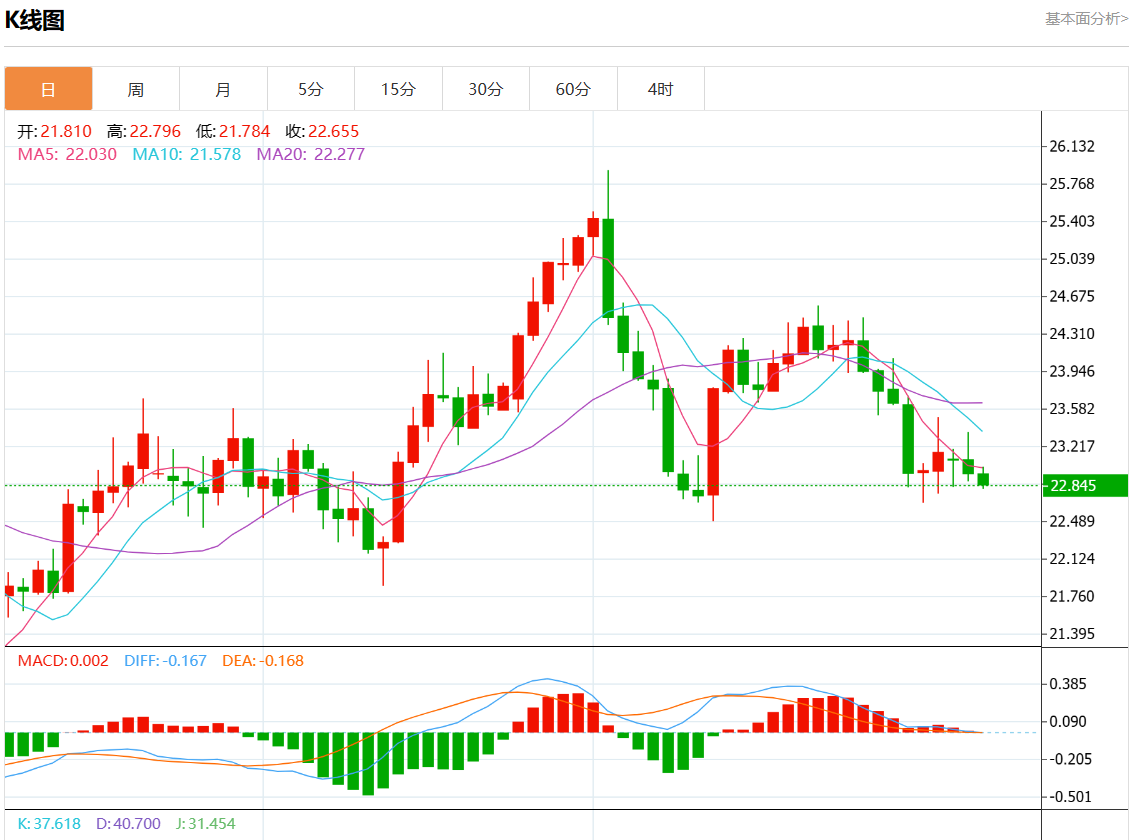 周三欧市盘中,现货白银报23.020,涨幅0.31%。
