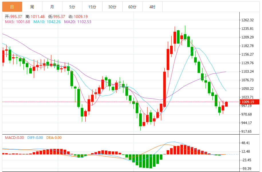 今日最新钯金行情:1009.26