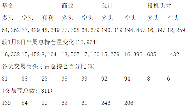 美国商品期货交易委员会(CFTC)最新公布截止1月9日当周COMEX铜期货分类持仓报告: