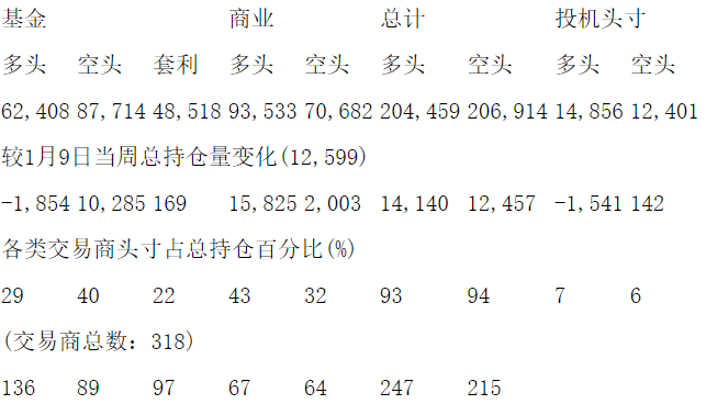 美国商品期货交易委员会(CFTC)最新公布截止1月16日当周COMEX铜期货分类持仓报告: