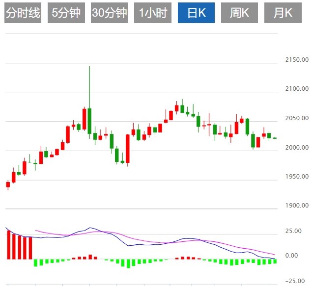 今天的预期交易区间在2010.00支撑位和2045.00阻力位之间。