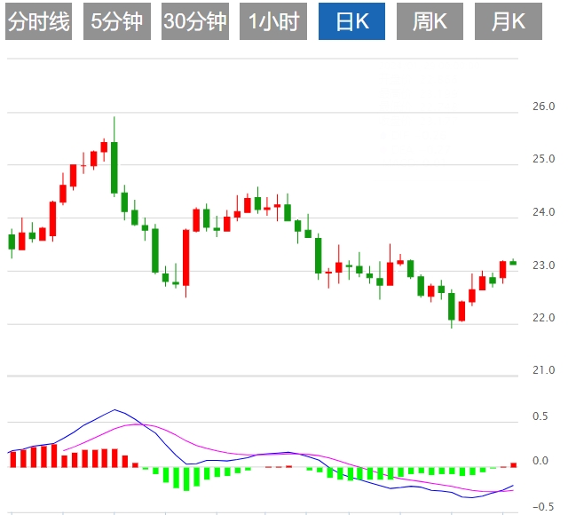 今天的预期交易区间在22.80支撑位和23.50阻力位之间。