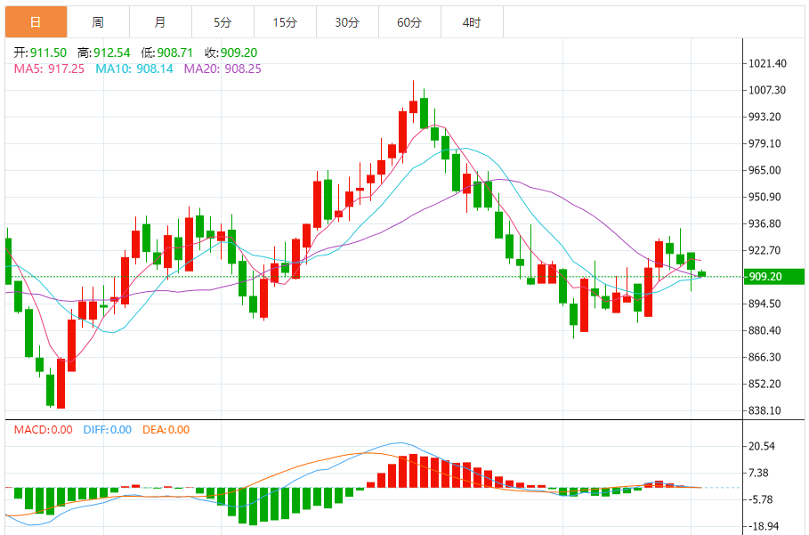 今日最新铂金行情:908.92