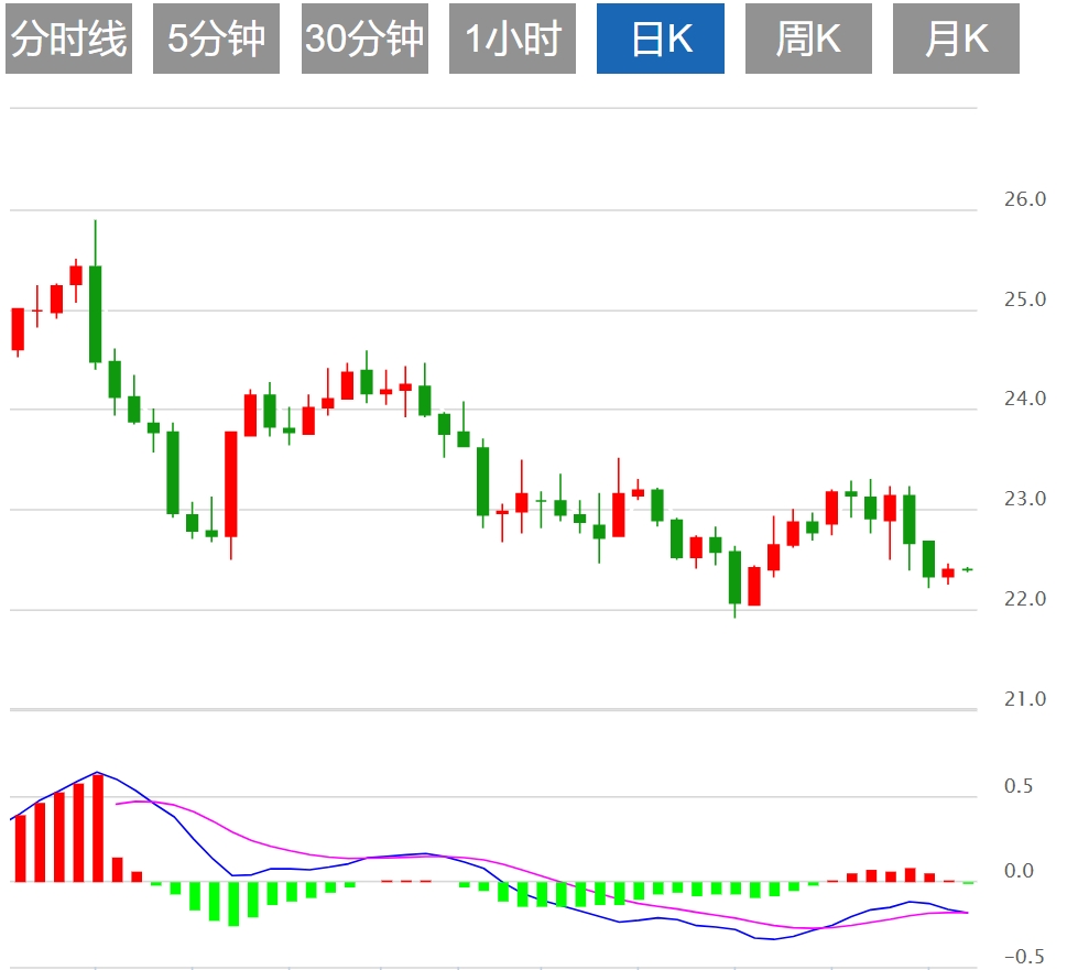 今天的预期交易区间在21.80支撑位和22.60阻力位之间。