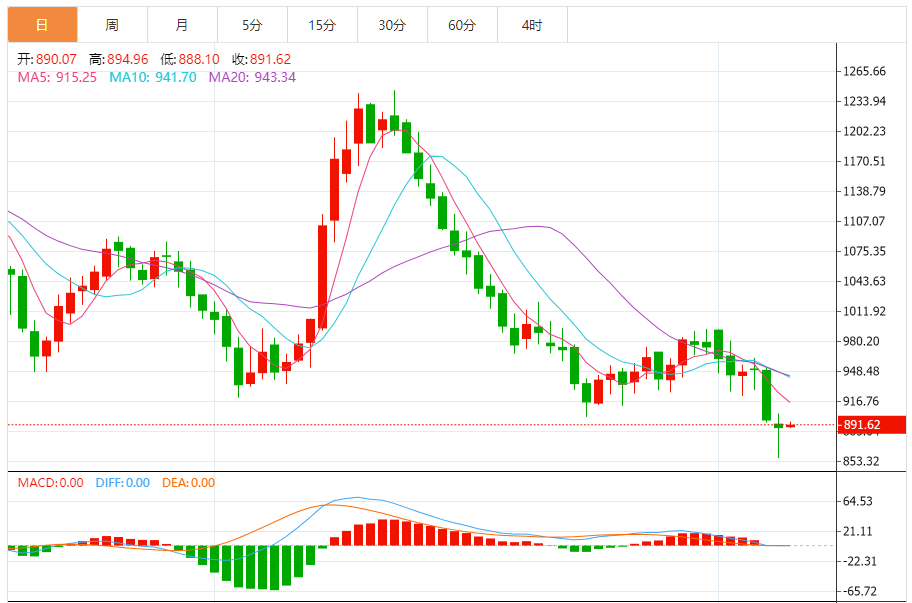 今日最新钯金行情:891.75