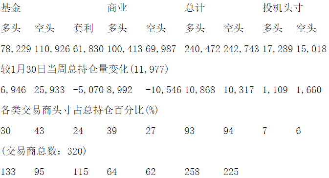 美国商品期货交易委员会(CFTC)最新公布截止2月13日当周COMEX铜期货分类持仓报告: