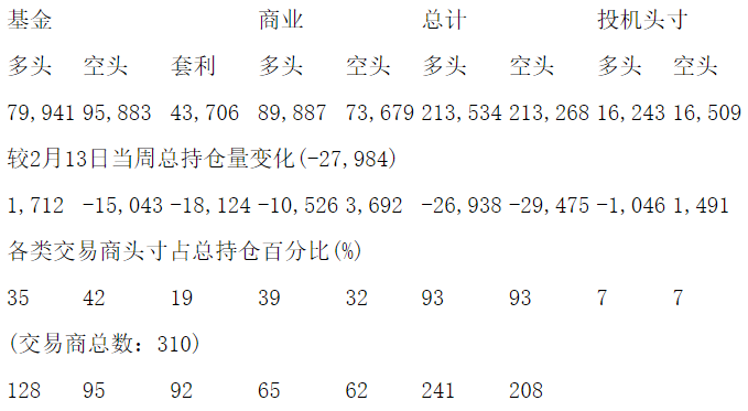 美国商品期货交易委员会(CFTC)最新公布截止2月20日当周COMEX铜期货分类持仓报告:
