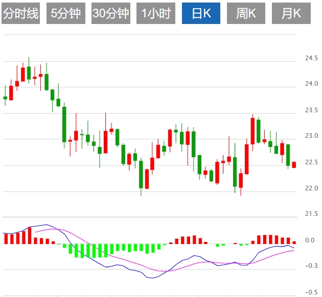 今日预期交易区间在22.20支撑位和22.80阻力位之间。