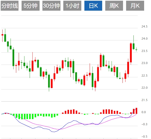 今日预期交易区间在23.10支撑位和23.90阻力位之间。