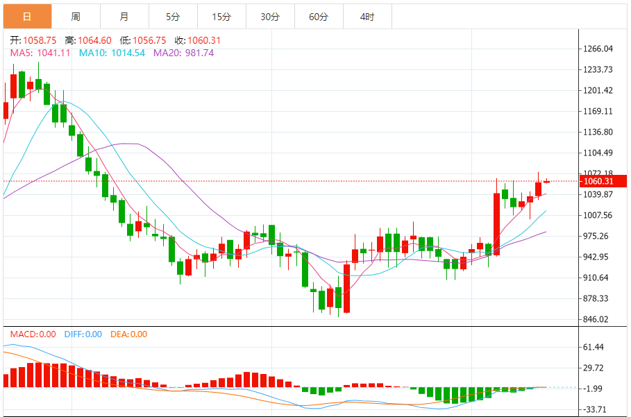今日最新钯金行情:1060.74