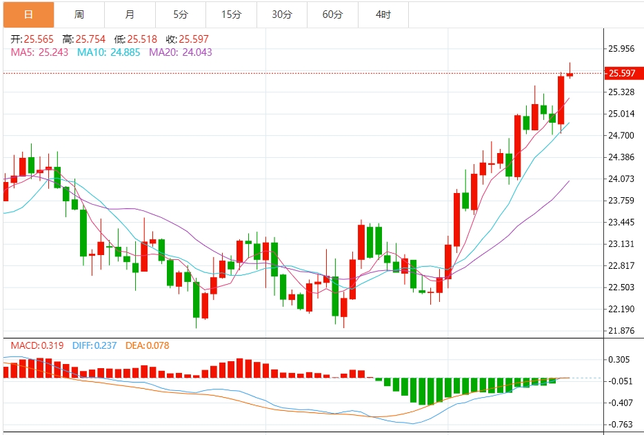 今天的预期交易区间在 25.50 美元支撑位和 26.30 美元阻力位之间。