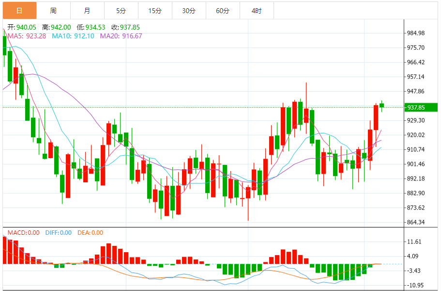 今日最新铂金行情:937.80
