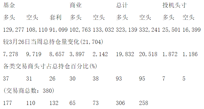 美国商品期货交易委员会(CFTC)最新公布截止4月2日当周COMEX铜期货和期权分类持仓报告:
