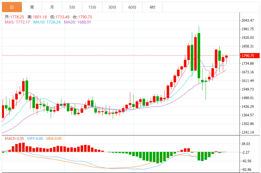 今日最新钯金行情:1782.02