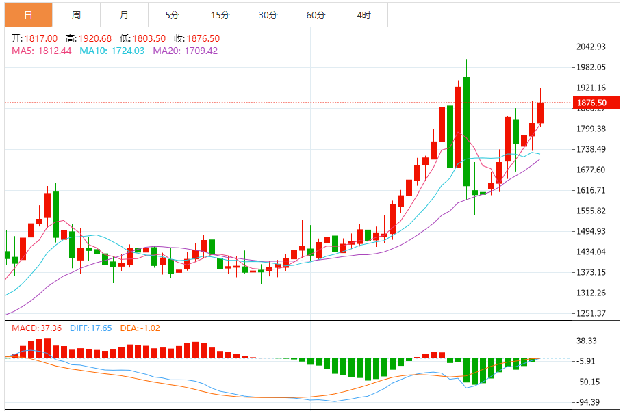日内交易策略:多单:4550.0尝试做多,止损4530.0,目标4574.0-4650.0附近。