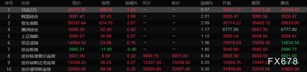 亚洲时段行情回顾