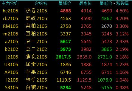 国内商品期货开盘:黑色系延续涨势,热卷、螺纹钢涨超4%