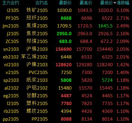 国内商品期货开盘:多数上涨,铁矿、焦煤等开盘涨超3%