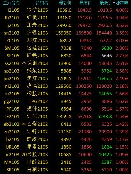 国内商品期货收盘:多数上涨,铁矿石涨4%、焦炭等涨逾3%