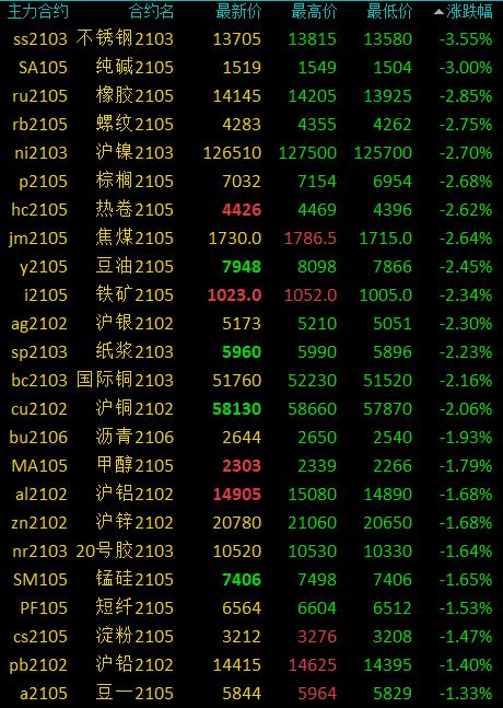 国内商品期货开盘:普遍下跌,焦炭跌逾4.6%、不锈钢等跌超3%