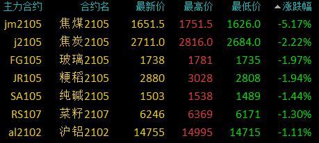 国内商品期货收盘:多数收涨,菜粕涨停创新高、焦煤跌超5%