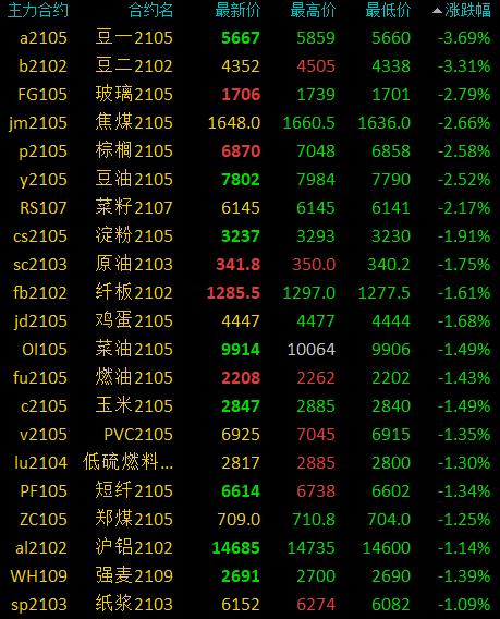 国内商品期货开盘:多数低开,豆一等开盘跌超2%、原油跌近1.5%