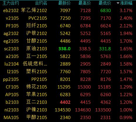 国内商品期货开盘:多数上涨,能源化工领涨、苯乙烯等涨超2%