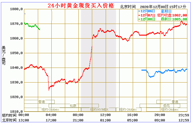 周二(12月8日)亚市盘中,美元指数基本持稳,现报90.90附近;现货黄金短线拉升,金价目前逼近1870美元/盎司,市场预期美国将出台新的财政刺激措施提振金价上涨。此外,地缘政治紧张局势也引发避险买盘,从而利好金价走势。消息显示,当地时间12月7日,美国财政部宣布对14位中国官员实施制裁,美国务院批准价值2.8亿美元对台军售案。