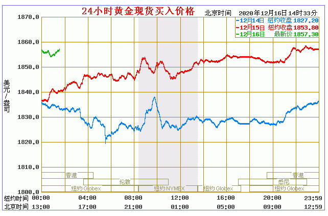 周三(12月16日)现货黄金走高,创一周以来新高,交投于1857附近,周二(12月15日)金价涨1.44%至1853.63美元/盎司,受美国将出台新一轮新冠援助计划的预期提振,与此同时,感染病例不断增加再次引发人们担忧疫情造成的经济损失。