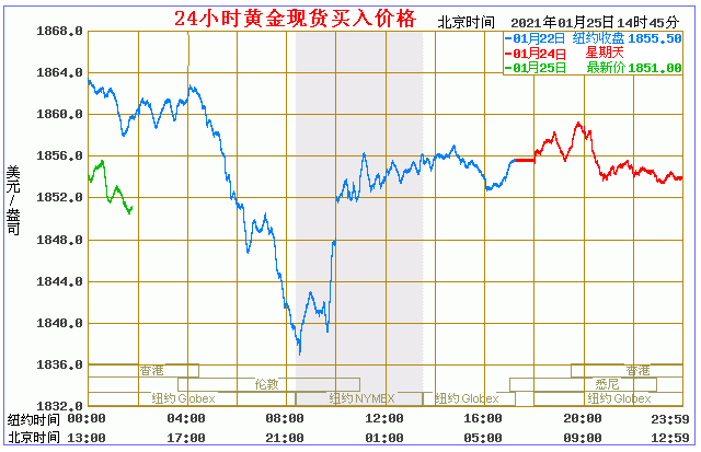 周一(1月25日)亚洲时段,现货黄金小幅下跌,交投于1854附近。上周五(1月22日)现货黄金跌0.77%至1855.61美元/盎司,因疫情导致恐慌情绪升温,市场抛售黄金而选择美元。不过市场仍然看好黄金本周走势,分析师认为刺激措施所带来的通胀预期将是金价上涨的重要因素。