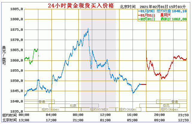 今日黄金价格走势图(2021年2月1日)