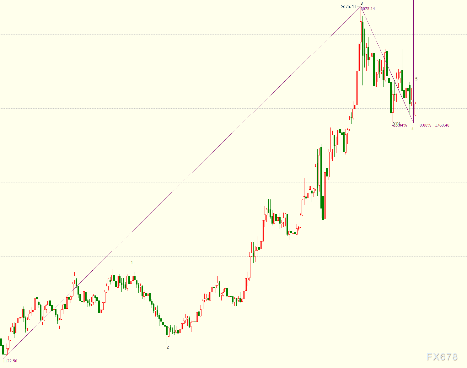 小时图上看,现货黄金在1760美元上方附近结束自1855美元开启的下行(c)浪走势。(c)浪隶属于自1959美元开启的下行((c))浪。日线上看,((c))浪则是自2075美元开启的调整4浪的子浪。若金价自1760美元开启上行5浪走势,近期阻力位上看14.6%目标位1899美元。