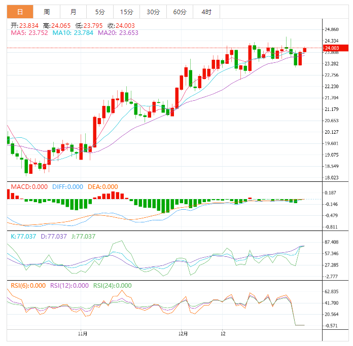 白银价格在当日高点24.04美元附近保持坚挺,因为多头在周一早些时候继续控制。如此一来,白银延续了上周五从两周低点出现的180度大转弯。