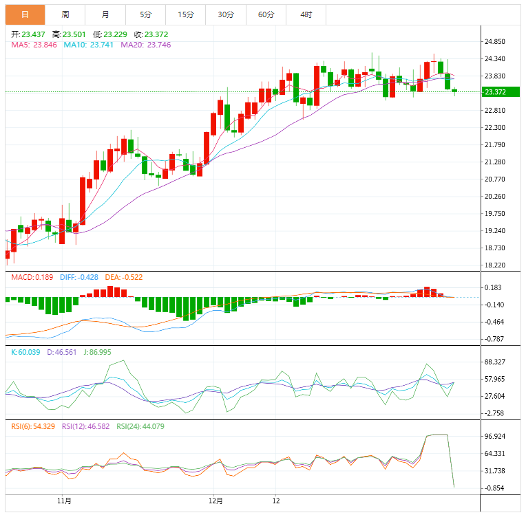 由于美元尾盘走强抵消了当天美元的跌幅,白银价格连续第二天暴跌,周三跌至23.50美元以下,这是白银的逆风。周四盘中,白银交易价格为23.37美元,比开盘价低1.97%。