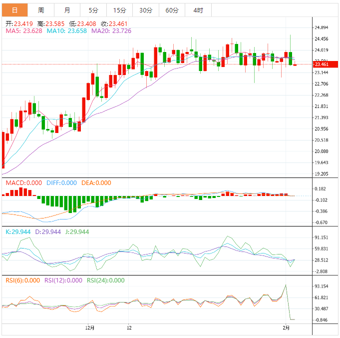 周五,在触及24.62美元的9个月新高后,白银价格暴跌,本周连续第四天未能突破23.00- 24.50美元的区间,截止目前,白银交易价格在23.40美元左右。