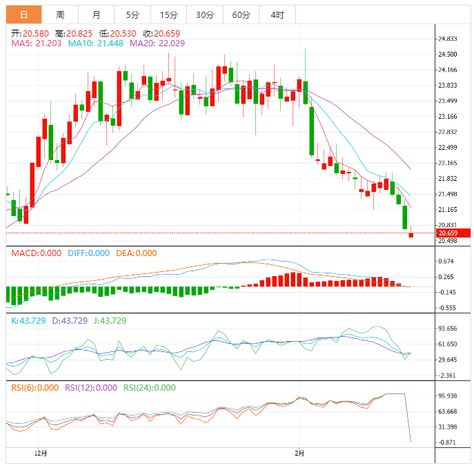 不过,相对强弱指数(RSI)条件和前面提到的20.55美元趋势线支撑位可能会限制大宗商品的进一步下行。