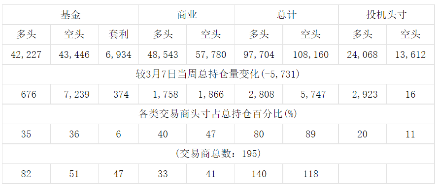 美国商品期货交易委员会(CFTC)最新公布截止3月14日当周COMEX白银期货分类持仓报告: