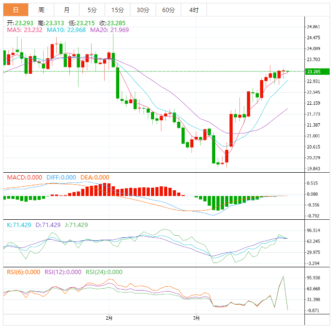 然而,10日移动均线23.00美元的支撑位限制了银价的近期下行,一旦突破这一支撑位,银价可能很快被拉向2月- 3月下跌的61.8%斐波那契回档位,接近22.80美元。
