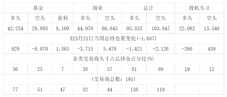 美国商品期货交易委员会(CFTC)最新公布截止3月28日当周COMEX白银期货分类持仓报告: