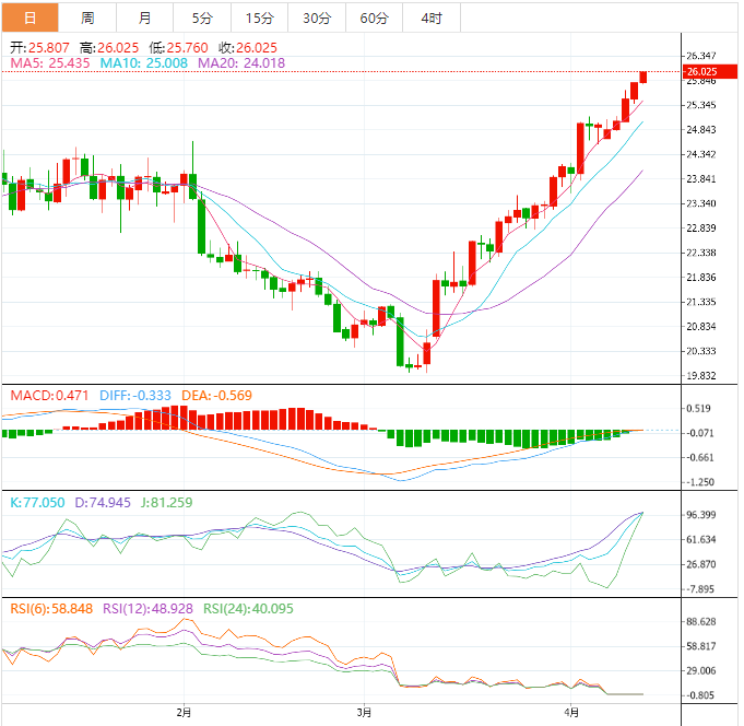 在银价跌破24.50美元的情况下,不排除银价逐渐下降至23.20美元附近的50%斐波那契回撤位的可能性。